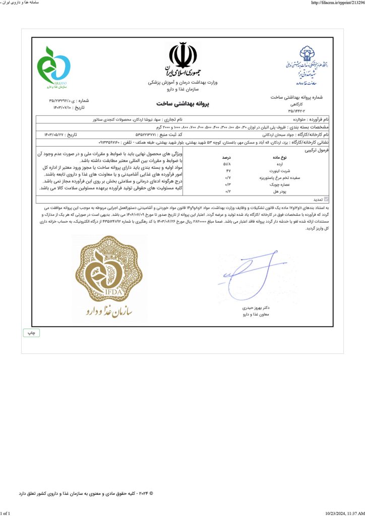 تولید شده در بستهبندی بهداشتی با حفظ کیفیت و تازگی